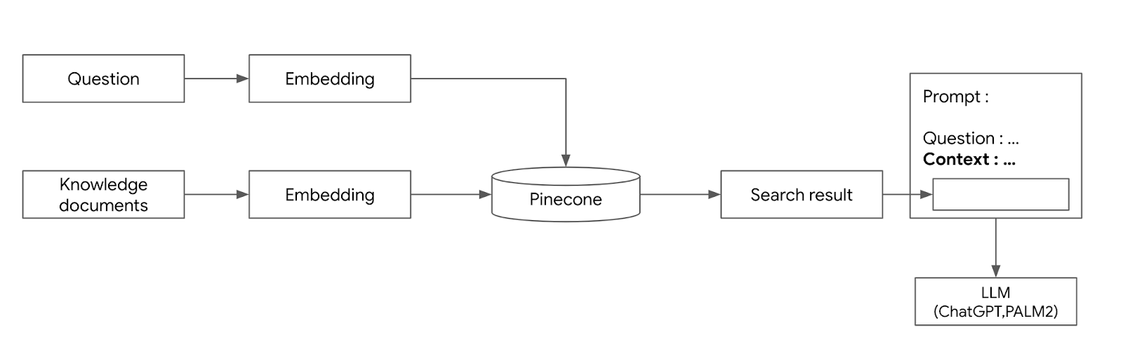 지금까지 pinecone에 문서를 저장하고, 이 문서를 검색하는 방법에 대해서 알아보았다. 그러면 ChatGPT와 같은 LLM에서는 이 문서 검색을 어떻게 통합해야할까?