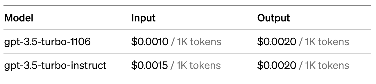 <그림. ChatGPT 3.5 Turbo 가격 >