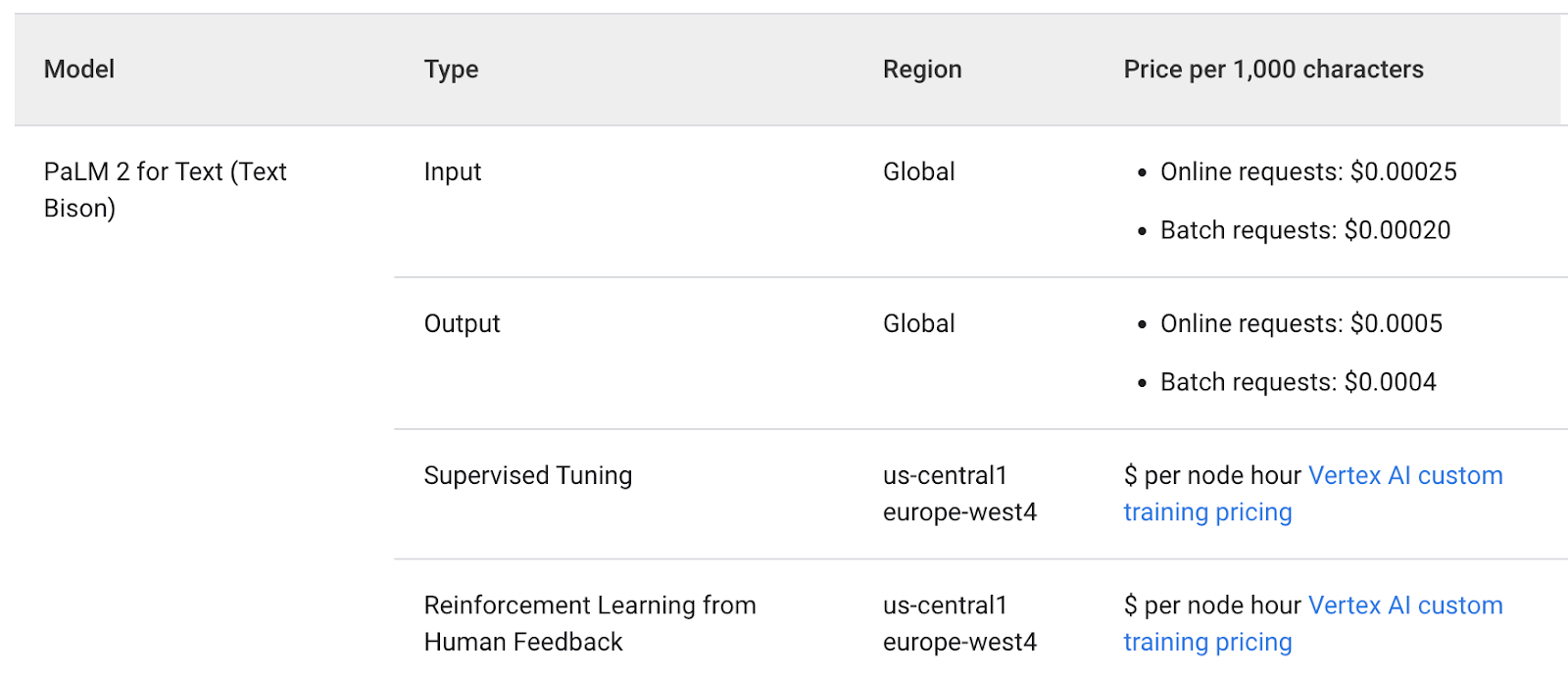 출처 : https://cloud.google.com/vertex-ai/pricing#generative_ai_models