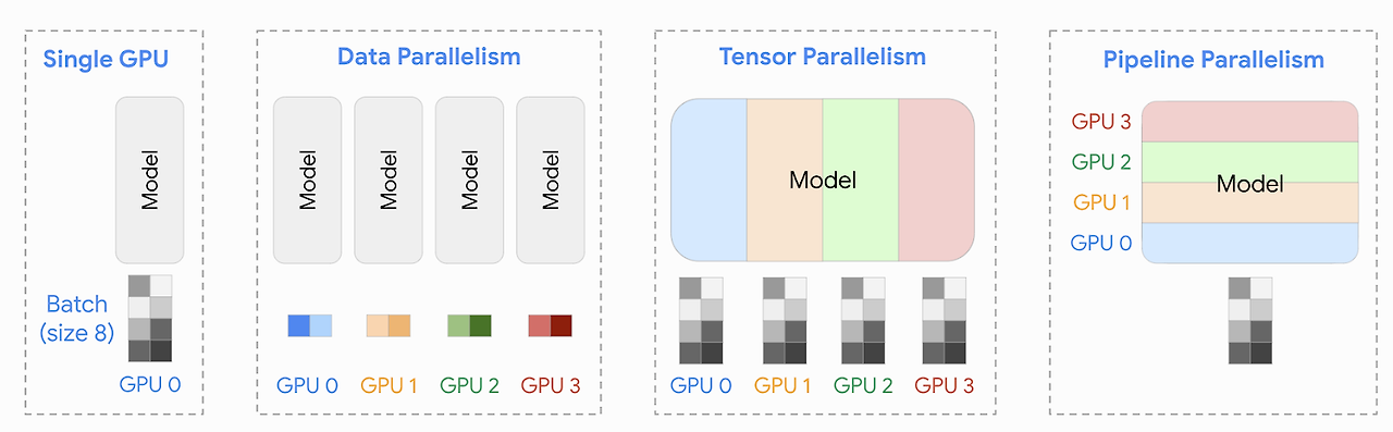 분산 학습 방법은 크게 모델 병렬화 (Tensor Parallelism), 데이터 병렬화 (Data Parallelism) 으로 분류 할 수 있다.