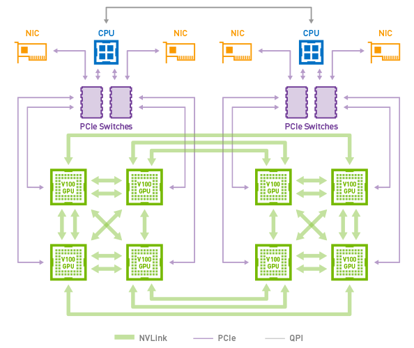 이로 인하여 GPU 머신간의 통신이 PCI-e 슬롯을 거치지 않고 직접 NVSwitch를 통해서 GPU-to-GPU간 직접 통신이 가능하게 된다.