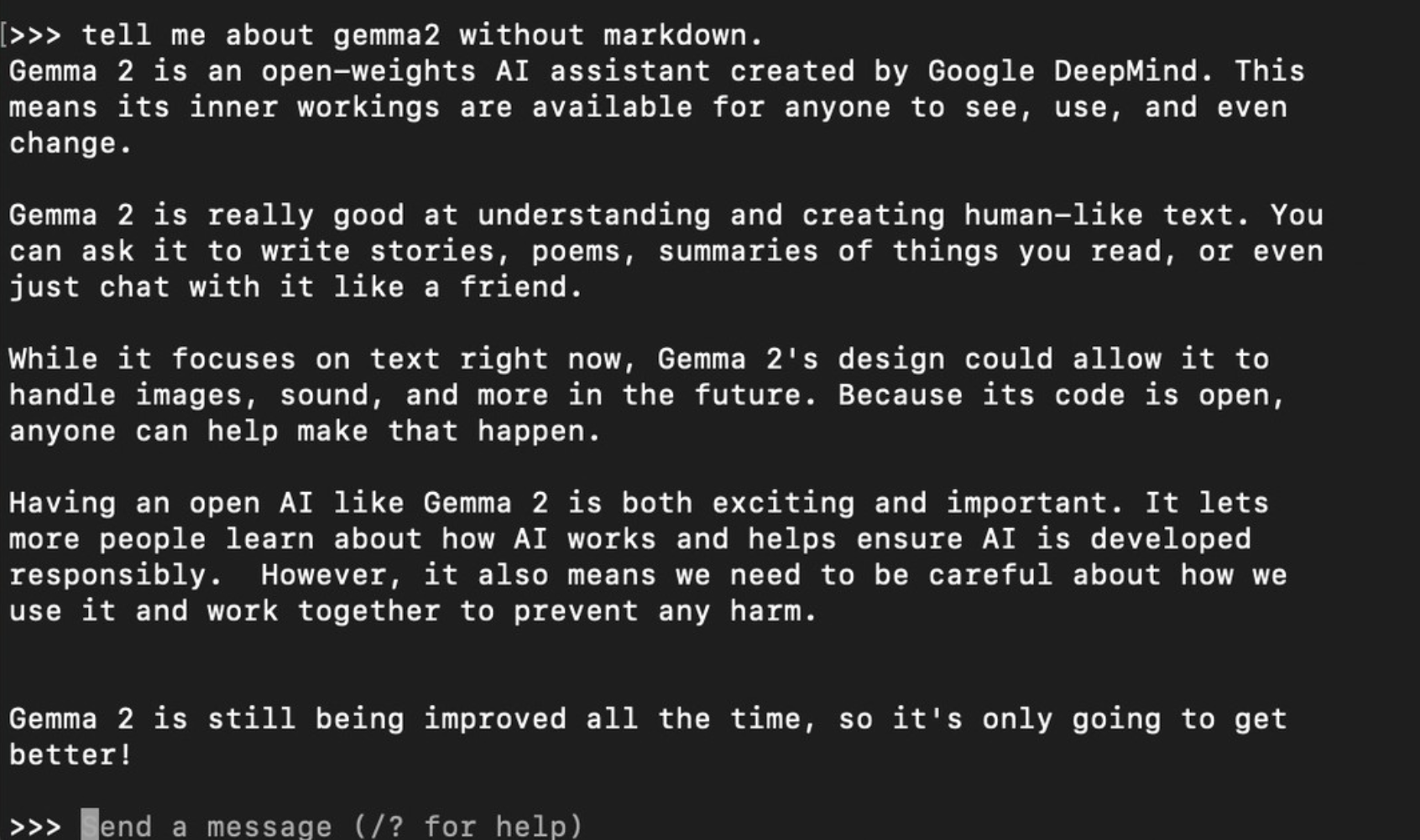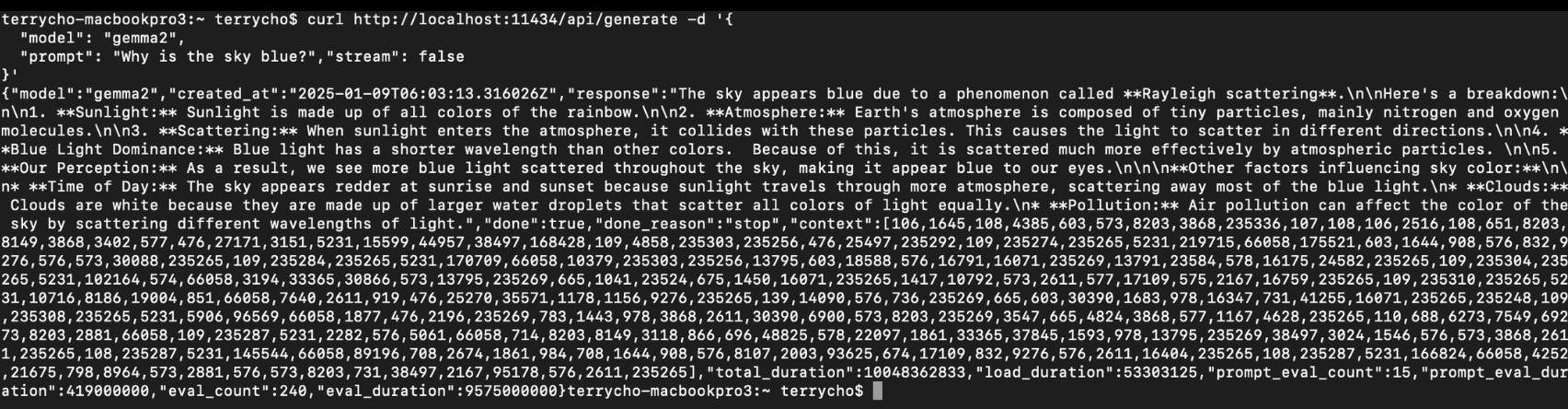 Ollama는 아래와 같이 CLI환경에서 프롬프트를 입력할 수 있다.